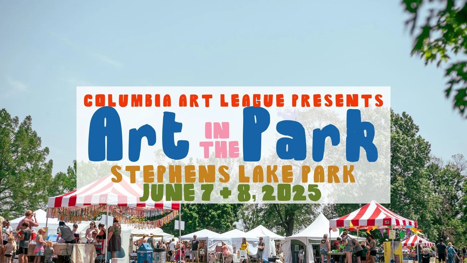 The festival features artists from across the United States, displaying a variety of media including painting, drawing, photography, pottery, jewelry, fibers, sculpture, wood, and glass. Art in the Park is organized by Columbia Art League. Entrance to the festival is FREE!
